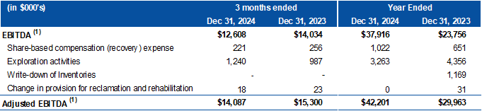 "Adjusted EBITDA" represents EBITDA, adjusted to exclude exploration activities, share-based compensation and change in provision for reclamation and rehabilitation.