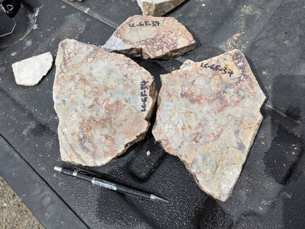 These features are suggestive of a substantive epithermal system. Several rock samples were also taken during the recent field visit and are in the laboratory for analysis.