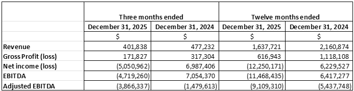 Revenue for the fourth quarter of 2025 decreased to $401,838 in comparison to Q4/2024 revenue of $477,232. The revenues are primarily generated from the servicing of lease contracts.