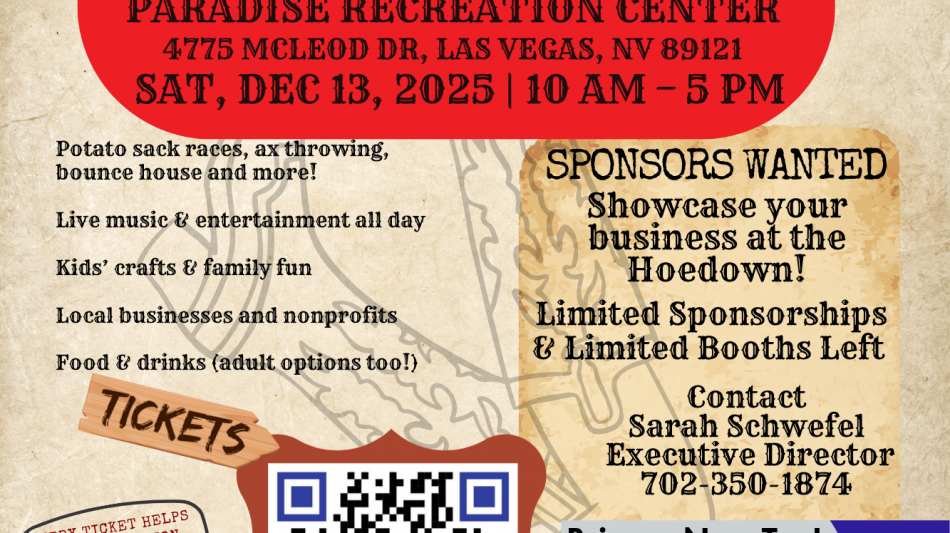 Location: Paradise Recreation Center, 4775 McLeod Dr. Las Vegas, NV 89121