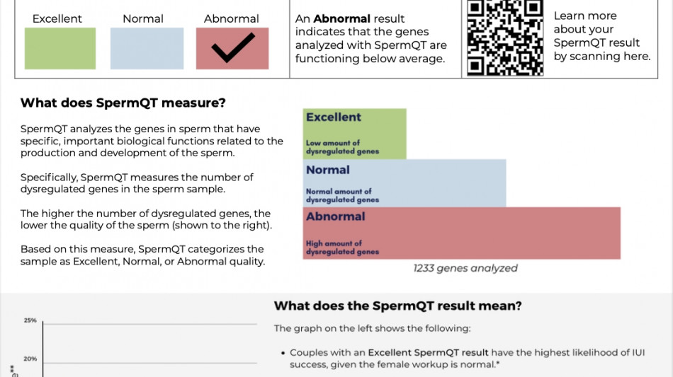 PHOTO CAPTION: SpermQT Test Results Overview Page from Path Fertility. March 2026