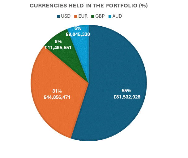 - An unrealised foreign exchange loss of £5.1 million across the portfolio companies where we hold our investments in EUR and USD, due to negative USD and EUR currency movements against the Company's reporting currency of Pound Sterling in the quarter. A breakdown of the portfolio companies invested currency is as follows:
