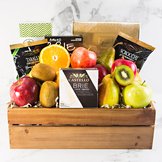 Gourmet Food Baskets: Curated selections of fine cheeses, crackers, preserves, and savoury treats that delight foodies.