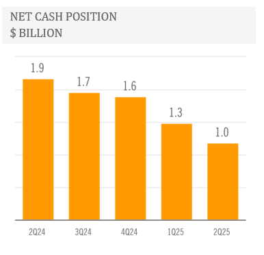 Note: Ternium Argentina's consolidated position of cash and cash equivalents and other investments amounted to $1.0 billion as of June 30, 2025, $1.1 billion as of March 31, 2025 and $1.3 billion as of June 30, 2024.