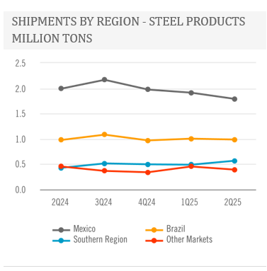 In the Southern Region, shipments rose both sequentially and year-over-year during the second quarter of 2025, reflecting a recovery in steel demand in Argentina and, on a sequential basis, a seasonal rebound in activity.