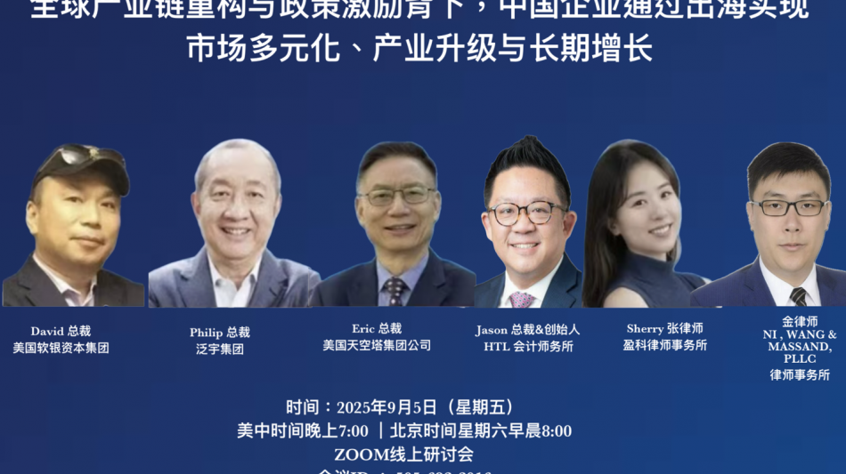 This online Summit was hosted by ASC Global Inc. , APOZ Steering Committee, and participated by Skytower Group Inc., Sinoaccess Group, HTL Certified Public Accountants, Yingke Law Firm, NI, WANG & MASSAND, PLLC, TransGlobal Financial, George H.W. Bush Foundation for U.S.-China Relations, and The Carter Center's U.S.-China Program, the online seminar "Opportunities and Strategies for Asian Enterprises Going Global" was successfully held on September 5, 2025, at 7:00 PM (U.S. Central Time).