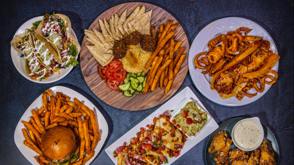 Gyro & Carne Asada Fries combining global spices, tzatziki, lime crema, guacamole, and fresh pico