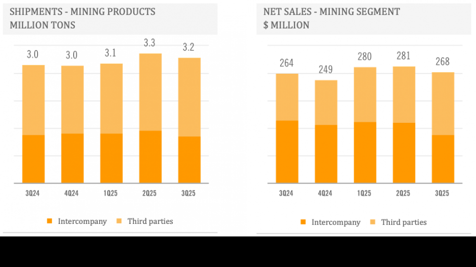 In the third quarter of 2025, the Steel Segment's net sales remained stable sequentially with slightly higher sales volumes offset by slightly lower realized steel prices. Year-over-year, the Steel Segment's net sales declined by 13% in the third quarter of 2025. Sales volumes decreased by 9% year-over-year, primarily driven by lower shipments in Mexico and Brazil, partially offset by higher shipments in the Southern Region. Steel revenue per ton declined by 5% year-over-year, reflecting lower realized steel prices particularly in the Southern Region and Other Markets.