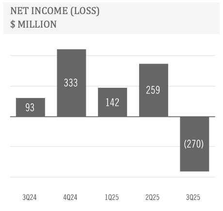 Net result in the third quarter of 2025 was a loss of $270 million. This result includes a $405 million income tax charge in connection with a write-down of deferred tax assets at Usiminas and a $32 million loss stemming from the quarterly update of the value of a provision for ongoing litigation related to the acquisition of a participation in Usiminas.
