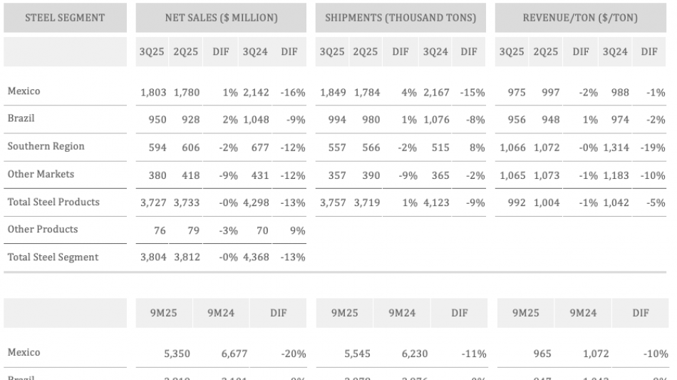 In Mexico, the company expects shipments to decline sequentially in the fourth quarter of 2025, reflecting both subdued construction activity and end-of-year seasonality. The Mexican steel market continues to face challenges, particularly from ongoing tariff negotiations with the United States, which have contributed to an environment of uncertainty.