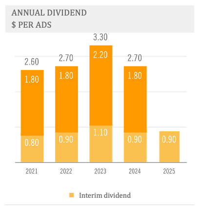 Interim dividend figure compared to third quarter of 2024. Other figures compared to second quarter of 2025.