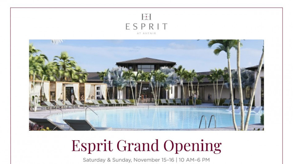 "Residents will enjoy more private amenities than any other community in Avenir," added Grove. "Esprit at Avenir was designed to deliver a lifestyle that's Always Exceptional, Always Esprit, a setting that blends elegance, activity, and community in perfect balance."