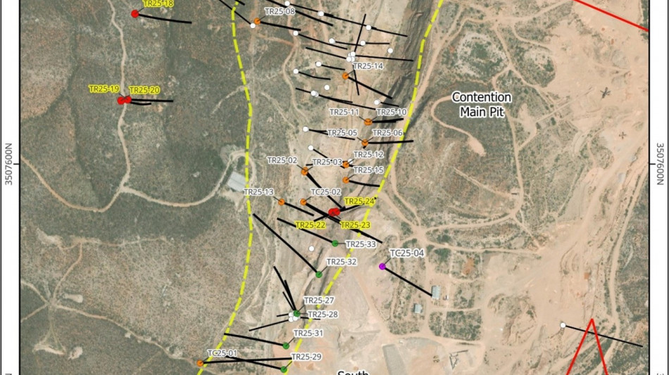 RC drill hole TR25-26 was collared as a northerly offset to TR25-17 in the center of the northern Contention mine area: