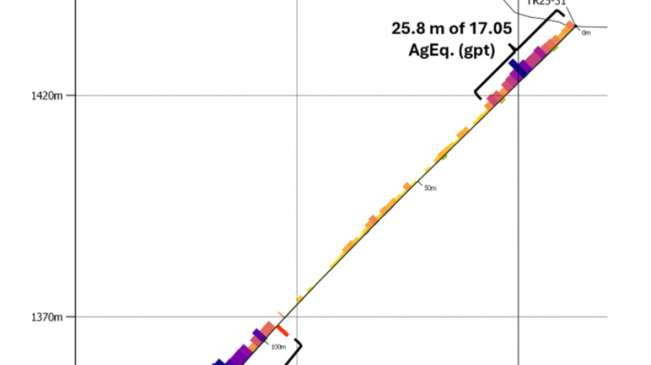 Drill hole TR25-31 intersected 44.1 meters averaging 158.97 gpt AgEq (77.7 gpt Ag and 1.161 gpt Au) including 3.0 m averaging 990.78 gpt AgEq (465.5 gpt Ag and 7.504 gpt Au)