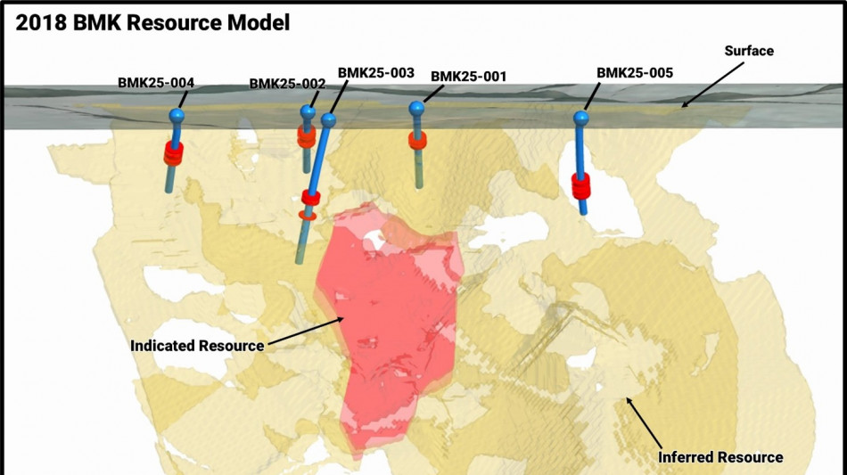 *BMK25-001A was abandoned at 83.29m due to poor drilling conditions, BMK25-001 was collared at the same location, drilling to a depth of 165 m, successfully testing the intended target area.