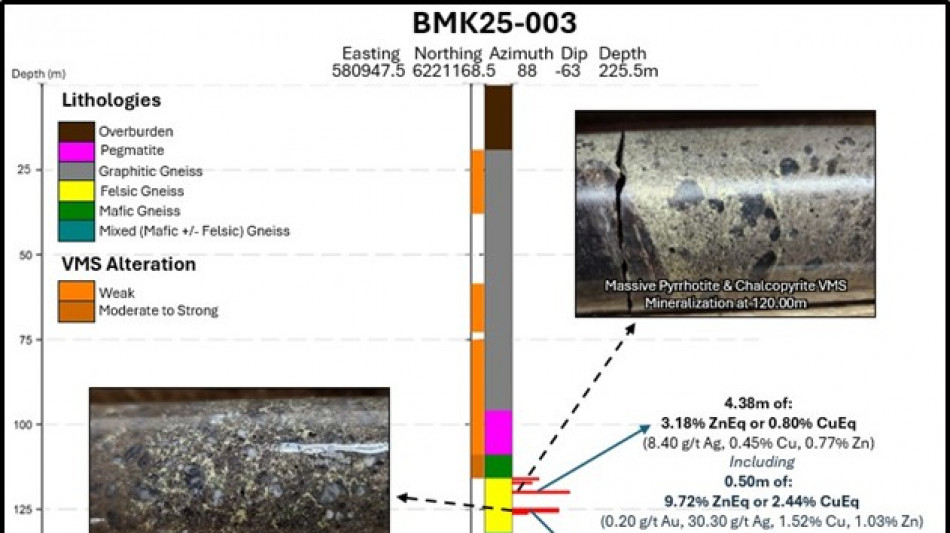 Murchison Minerals Announces Assay Results From 2025 Diamond Drill Program At BMK VMS Deposit, All Holes Intersecting Significant Near-surface High-grade VMS Mineralization Including Precious Metals, Grades Up To 5.52% CuEq Or 21.97% ZnEq Including, 208g/t Ag, And 1.43g/t Au
