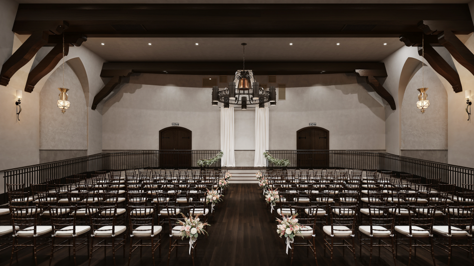 1938 Spanish Colonial Revival Theater Reimagined as Elegant Event Space with Partial Ocean Views and Historic Ceremony Space