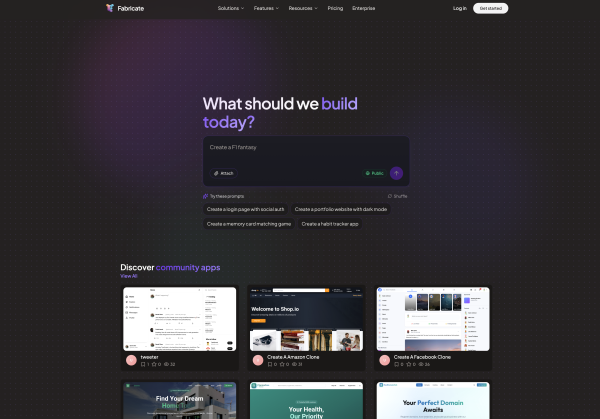 Fabricate is an AI-powered full-stack application builder that turns natural language descriptions into production-ready web applications. Built on Cloudflare's global infrastructure, the platform generates real React and TypeScript code with integrated databases, payments, authentication, and one-click deployment. Fabricate is designed for founders, startups, agencies, and professionals who need to build and ship custom software without hiring a development team.