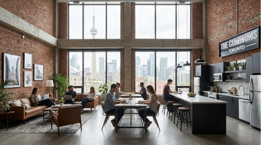 Modern co-living spaces in urban Canada offer community and affordability for young professionals.