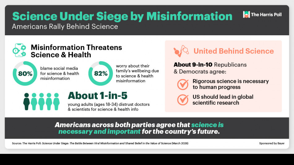 NEW YORK CITY, NY / ACCESS Newswire / March 18, 2026 / The Harris Poll, a Stagwell (NASDAQ:STGW) agency, announced today the results from a landmark survey, "Science Under Siege: The Battle Between Viral Misinformation and Shared Belief in the Value of Science," sponsored by Bayer. The survey revealed a profound "misinformation paradox" at the heart of American life: while 80% of Americans blame social media for false or misleading health and science information in the media and online, these platforms are the public's top source for such news.
