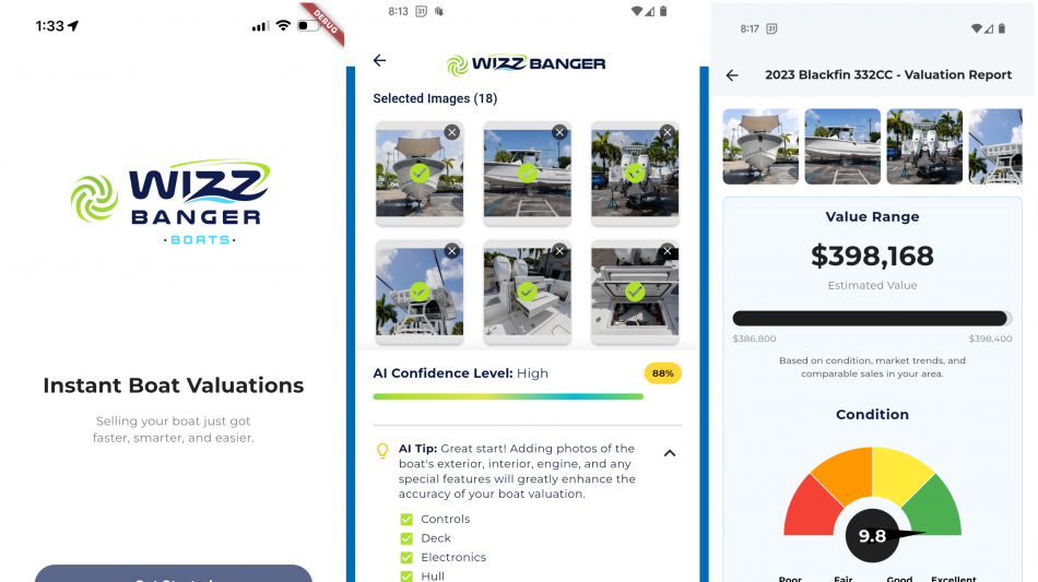 In addition to valuation accuracy, the WizzBanger Value App is designed for flexibility. Boat owners can use it as a do-it-yourself pricing guide, while dealers gain consistent, rapid valuations across their entire inventory. Lenders and insurers benefit from unbiased condition scoring and market-backed price ranges that make risk assessments more reliable. The app also supports repair planning, helping sellers understand which upgrades or fixes will deliver the greatest return before listing a vessel. These combined features ensure the tool delivers value across every corner of the marine ecosystem.