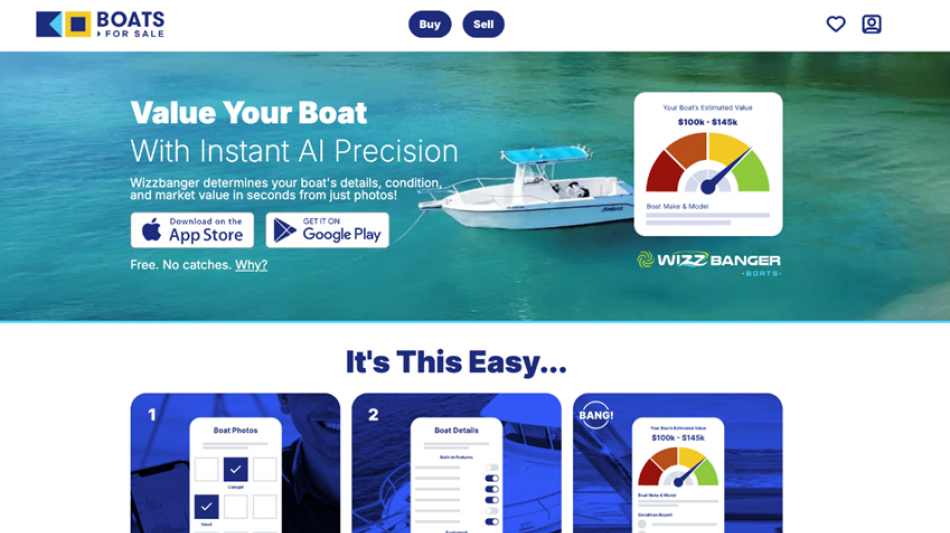 AI Valuation (WizzBanger Value App): Further enhancing the user experience, BoatsForSale.com has integrated the recently released WizzBanger Value App (available on the Apple App Store and Google Play Store), a first-of-its-kind mobile tool that uses AI-driven, photo-based analysis to deliver fast, accurate, and transparent boat valuations. "By bringing together BoatsforSale.com and our new WizzBanger Value App, sellers and dealers can now price their boats accurately by providing detailed valuation reports," stated Visconti. "This transparency ensures that listings are competitively priced from the outset, streamlining the negotiation process and helping to facilitate faster, more confident sales."