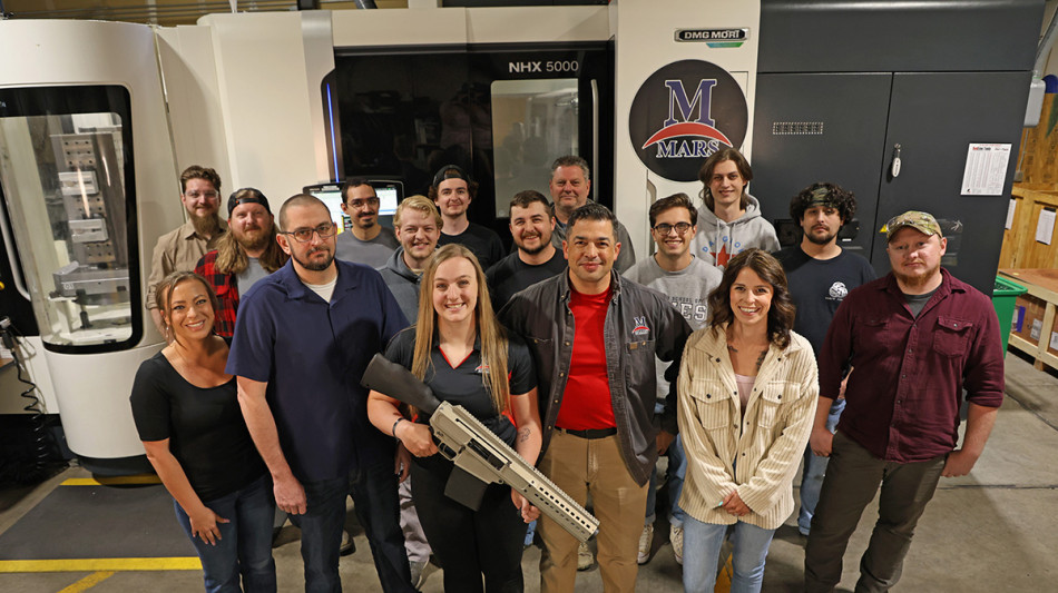 MARS Team poses with the 30mm SSRS at the MARS manufacturing facility.