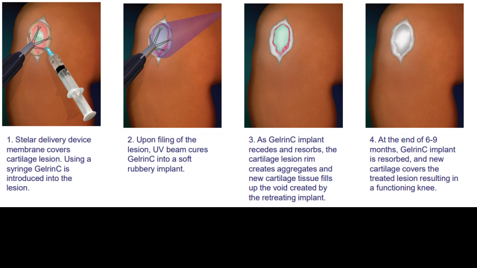Lead product GelrinC®, a hydrogel synchronized erosion and resorbable implant, the only restorative product for knee cartilage repair, is a breakthrough effective and economical procedure to address a large unmet need