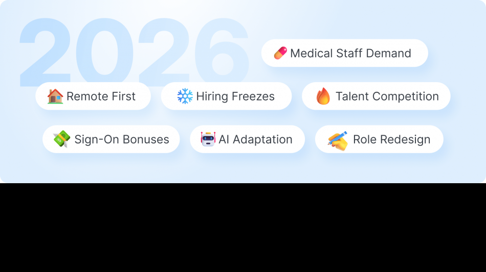 Escalating healthcare talent shortage. Medical facilities face mounting pressure to offer larger sign-on bonuses and highly flexible shifts to attract professionals. Healthcare appears positioned to remain the only sector showing steady growth while other industries stagnate.