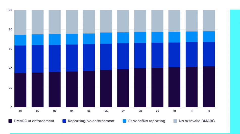For security and IT leaders, this report is a critical call to action: treating a reporting-only DMARC policy as "done" creates a false sense of security and leaves domains vulnerable to the new wave of sophisticated, AI-driven attacks. The 36-point gap is not a technical oversight but a failure of management and enforcement.