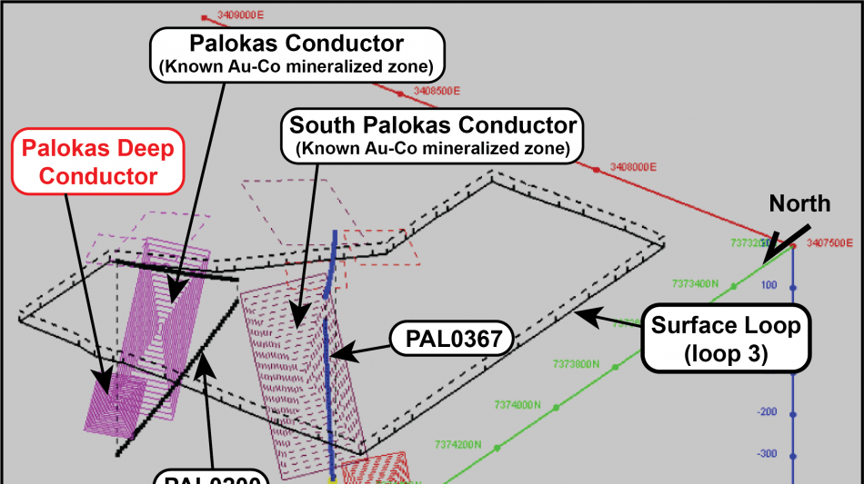 Several strong conductors are located down-dip/down-plunge of both the Palokas and South Palokas zones suggesting gold-cobalt mineralization continues with depth