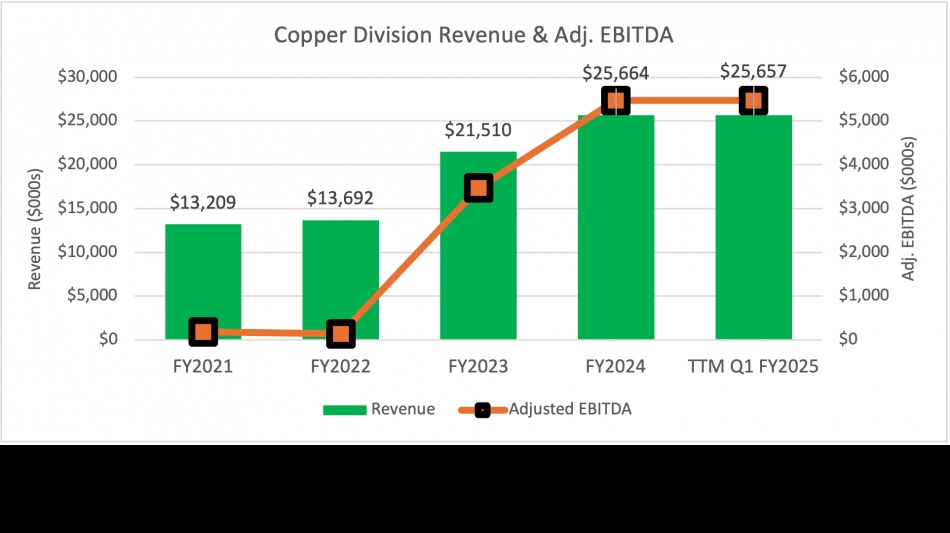 Copper alloys division (continuing operations) sales remained steady at $4.9 million