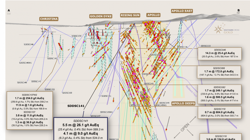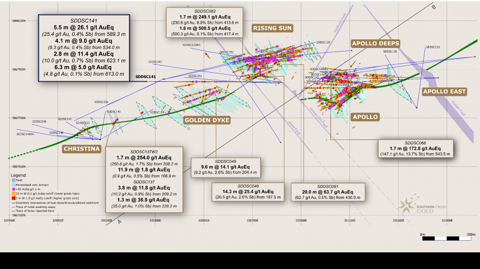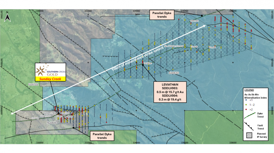 Southern Cross Gold's Sunday Creek Project Continues to Validate Its Position as One of the Most Significant Global Gold-Antimony Discoveries in Recent Years SXG's latest drilling has revealed exceptional gold grades at depth at the historic Golden Dyke mine area, supporting the growth potential of this zone, with key highlights including:
