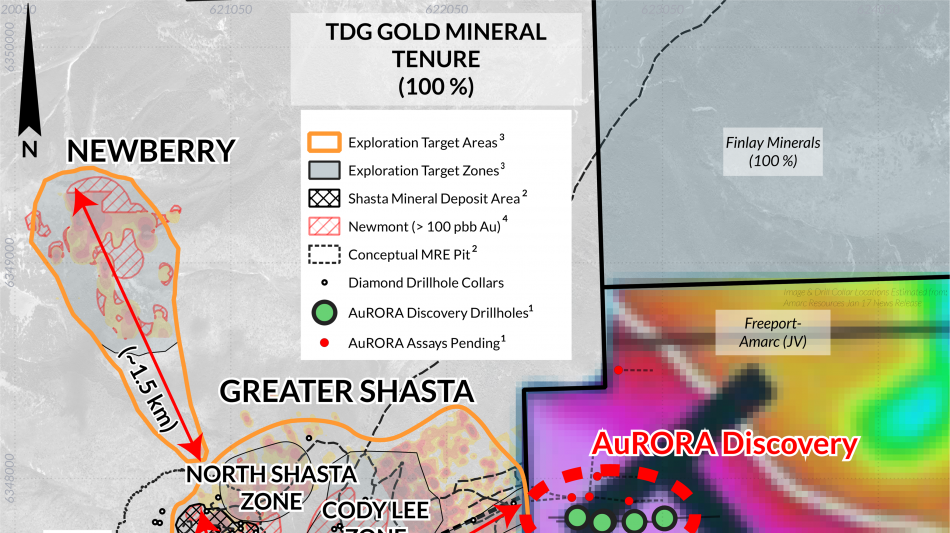 WHITE ROCK, BC / ACCESS Newswire / January 17, 2025 / TDG Gold Corp. (TSXV:TDG) (the "Company" or "TDG") is pleased to provide the following update as context for the exciting new gold-silver-copper discovery announced today by Freeport-McMoRan Inc. and Amarc Resources Ltd. ("Freeport-Amarc") on their AuRORA target1 (link), located on the boundary with TDG's 100 % owned, Greater Shasta-Newberry project Toodoggone District, B.C.