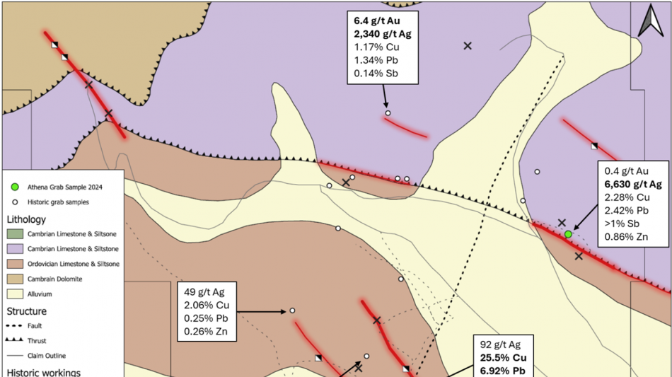"Since closing our financing, the team has wasted no time diving deep into Excelsior Springs and ground-truthing the newly acquired Blue Dick claims. The 6,630 g/t Ag sample, which exceeds all known historical silver sample grades at Excelsior, confirms the area's high-grade nature of silver mineralization. Importantly, to our knowledge, this target area has never been drill tested, presenting a major blue-sky opportunity for Athena. We plan to return to this area in short order," stated John Power, President and CEO of Athena Gold.