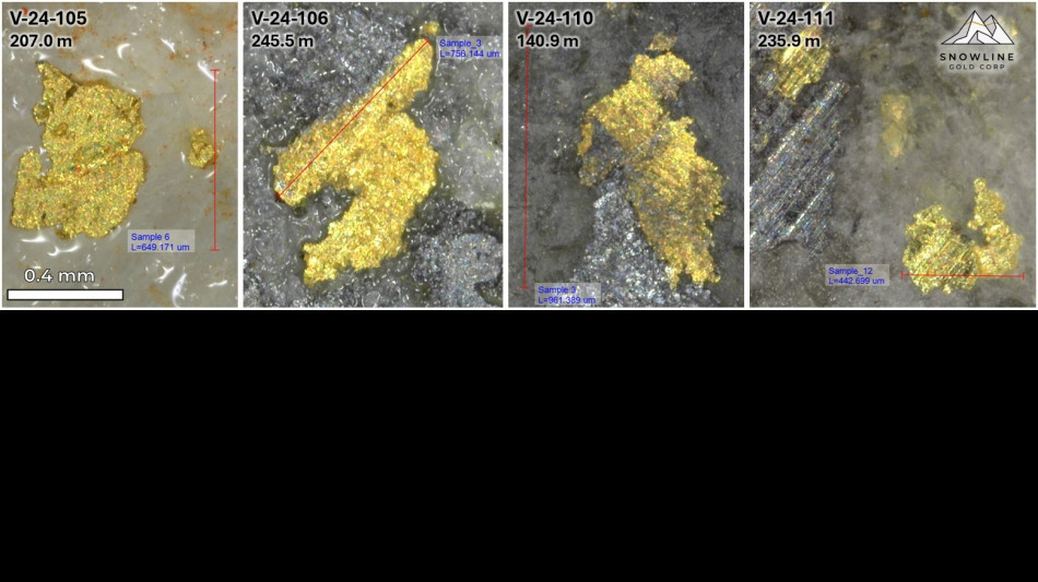VANCOUVER, BC / ACCESS Newswire / January 30, 2025 / SNOWLINE GOLD CORP (TSX-V:SGD)(OTCQB:SNWGF) (the "Company" or "Snowline") is pleased to announce further results from its 2024 drill campaign on the Valley deposit along with analytical results at its nearby Aurelius target on the Rogue Project, Yukon. At Valley, holes V-24-105 and V-24-111 delivered strong, consistent mineralization from infill holes in gaps along the margins of the high-grade, near-surface core of the deposit. Additional expansionary holes delivered broad intervals above the cut-off grade used in the initial Mineral Resource Estimate (MRE) for Valley, including mineralization outside of the resource-limiting pit shell (e.g. V-24-108, Figure 3). These results will help to inform an updated MRE for Valley anticipated in the coming months. Results are pending for an additional >7,200 m of drilling in 17 holes across two different targets: Valley (Rogue Project) and Jupiter (Einarson Project).