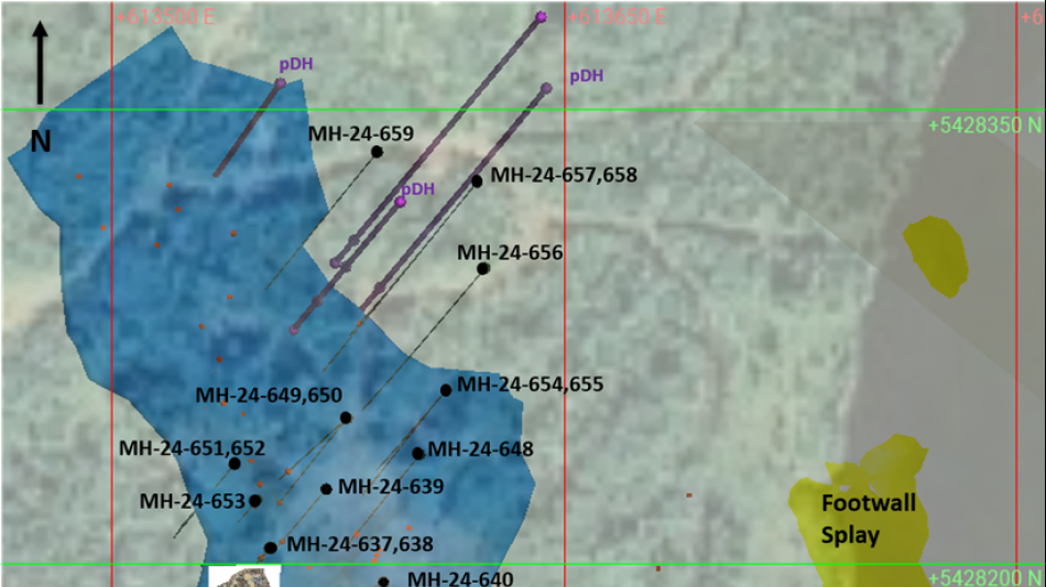 ST. JOHN'S, NL / ACCESS Newswire / January 30, 2025 / Sokoman Minerals Corp. (TSXV:SIC)(OTCQB:SICNF) ("Sokoman" or the "Company") is pleased to announce that diamond drilling has resumed at the Western Trend gold zone, the site of the conventional bulk sample planned for extraction late in Q1 or early Q2, 2025. The drill program is following up on the recently announced high-grade results highlighted by intersections of 69.48 g/t Au over 4.85 m (MH-24-649), 40.89 g/t Au over 4.30 m (MH-24-648) and 26.72 g/t Au over 3.10 m (MH-24-646) (please see January 22, 2025 news release here), from the trench area.