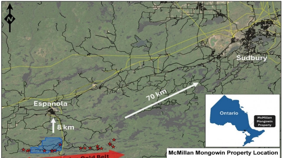The McMillan Gold Mine was a past producer of gold and is located within 3 km from major highways and power lines. Located geologically in the Huronian Gold Belt, this area of the province has been consistently identified as a top gold and polymetallic exploration opportunity as highlighted in the Ontario Geological Survey's Recommendation for Exploration between 2010 and 2025.