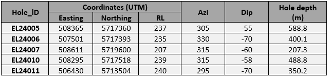 Table 1. Summary results from holes EL24005, EL24006, EL24010, EL24011