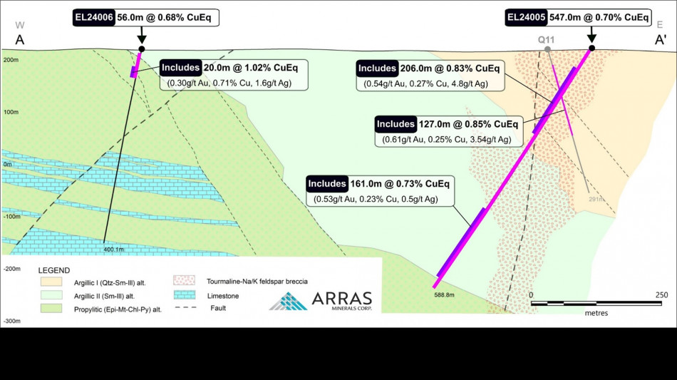 Arras Minerals Drills 547 Metres Grading 0.70% CuEq Starting from 14 Meters on the Berezski Target - Northeastern, Kazakhstan