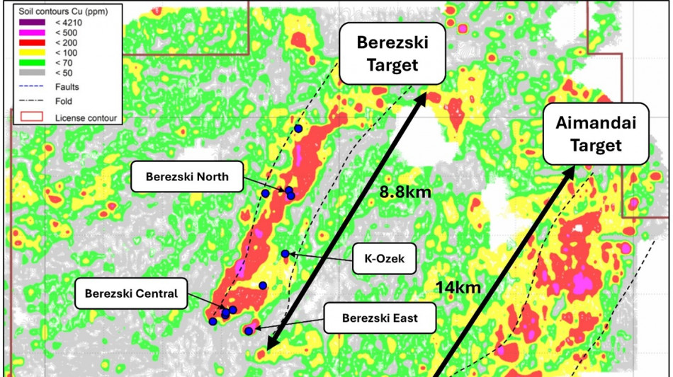He went on to add, "Over the last three field seasons, we've significantly advanced the Elemes-Aimandai licenses from an initial 530 sq km land package to identifying two major copper targets spanning nearly 9 km at Berezski, and 14 km at Aimandai. Our drilling this past year has confirmed at least two porphyry centers on the Berezski target, approximately 5 kms apart, with associated epithermal mineralization along the eastern boundary. With roughly 90% of the Berezski target still open and untested, the early success of Phase 1 gives us a strong foundation to hone in on two key areas, while continuing to develop additional high-priority targets across this large, highly prospective region."