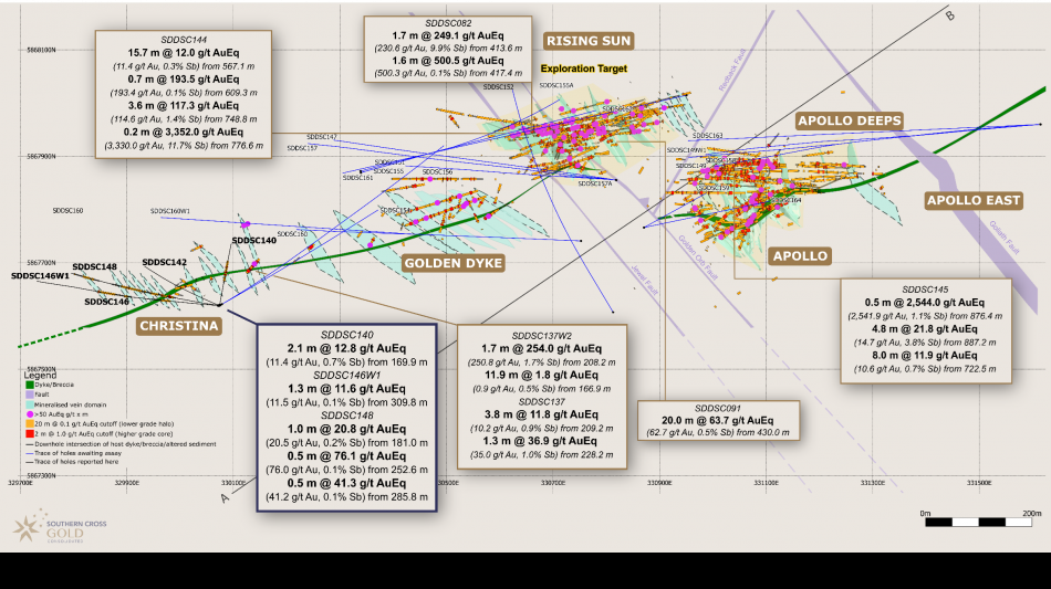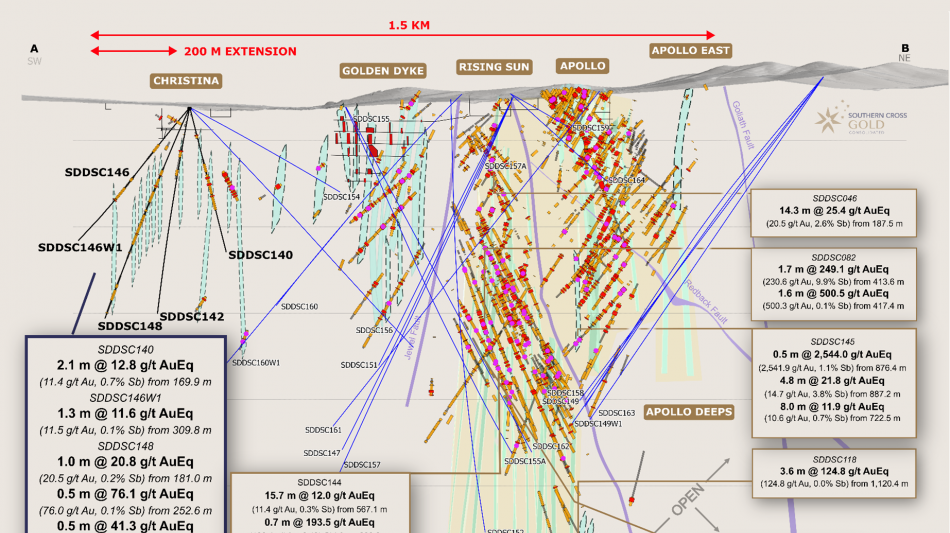 Southern Cross Gold Extends High-Grade Gold-Antimony Mineralization 200 Metres to West at Christina, Sunday Creek