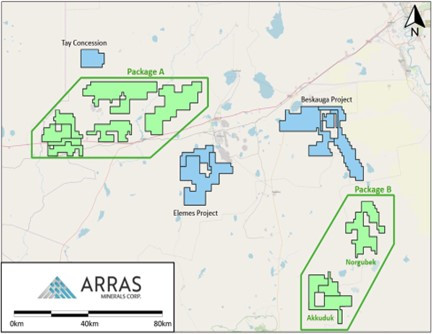 Arras is a Canadian exploration and development company advancing a portfolio of copper and gold assets in northeastern Kazakhstan, including the Elemes copper-gold porphyry project and the Option Agreement on the Beskauga copper and gold project. The Company has established the third-largest license package in the country prospective for copper and gold (behind Rio Tinto and Fortescue). In December 2023, the Company entered into a strategic alliance with Teck Resources Limited ("Teck") in which Teck may sole fund a US$5 million generative exploration program over a portion of the Arras license package in 2024-2025. The Company's shares are listed on the TSX-V under the trading symbol "ARK" and on the OTCQB under the trading symbol "ARRKF".