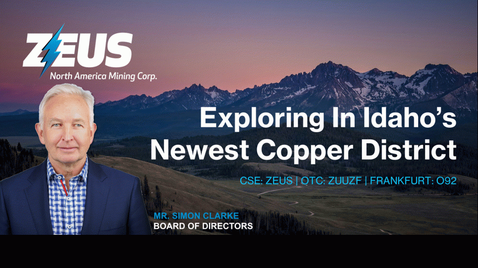 Dean Besserer, CEO of Zeus North American Mining Corp. stated "We see this as a pivotal time both for Zeus and critical mineral projects across the United States of America. We Welcome Simon's global and high-level experience to the board. His experience with high profile companies in the mining and energy sectors should prove to be invaluable to Zeus as we take Cuddy Mountain to the next level."