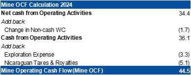 2024 - Mine OCF Calculation and Cash Reconciliation (in $ millions)