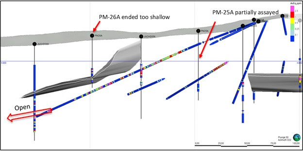 It is apparent after reviewing the Company's recent drill results, that the previous interpretation of the Santa Helena western edge, limited the size of the deposit due to historical drill holes being too shallow (PM-26A) or being partially un-assayed (PM-25A) ("Figure 2"). In addition, Meridian's field validation checks suggested that one mineralized hole, JUCHD-056, was mislocated in the historical database. Meridian's continued success in intercepting high-grade Au-Cu-Ag & Zn mineralization, indicates a far stronger and open system than historically modelled. As a result of this success, additional drilling is needed to close off this western zone of Santa Helena's mineralization before a mineral resource can be estimated; this will now be later in H2, 2025.