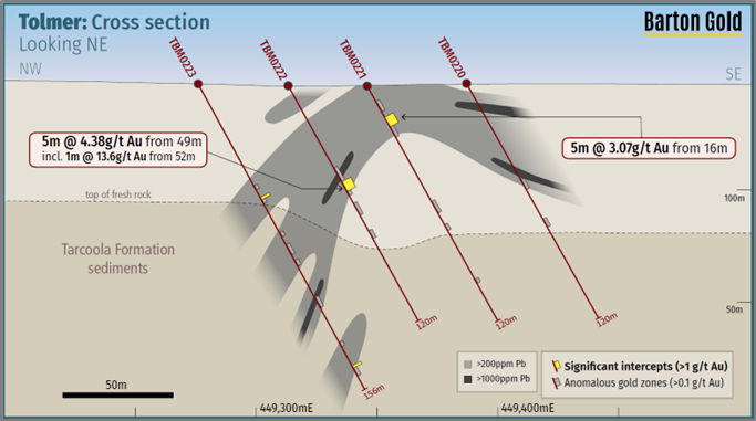 ADELAIDE, AUSTRALIA / ACCESS Newswire / April 15, 2025 / Barton Gold Holdings Limited (ASX:BGD)(FRA:BGD3)(OTCQB:BGDFF) ( Barton or Company ) is pleased to announce further high-grade assays from the Tolmer prospect ( Tolmer ) at its South Australian Tarcoola Gold Project ( Tarcoola ), where recent assays have confirmed high-grade gold and silver mineralisation. 1