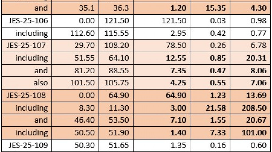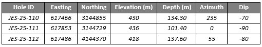 Table 3. Summary of Drill Results from 2025 Core Program. All intervals reported are drilled widths.