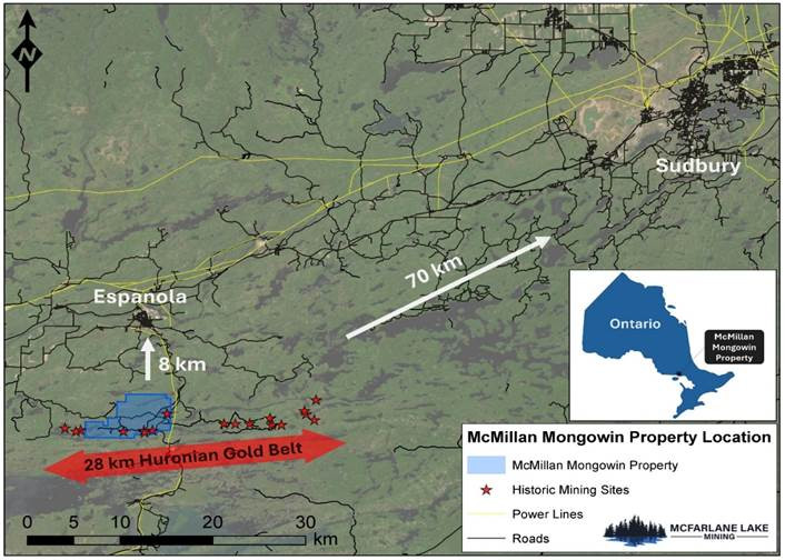 TORONTO, ON / ACCESS Newswire / April 22, 2025 / McFarlane Lake Mining Limited (CBOE:MLM)(OTCQB:MLML), "McFarlane Lake" or "the Company", a Canadian gold exploration and development company, today announces results of recent exploration drilling conducted at its 100% owned McMillan Mine property located approximately 70 kilometers west of Sudbury, Ontario (see Figure 1 for site location).