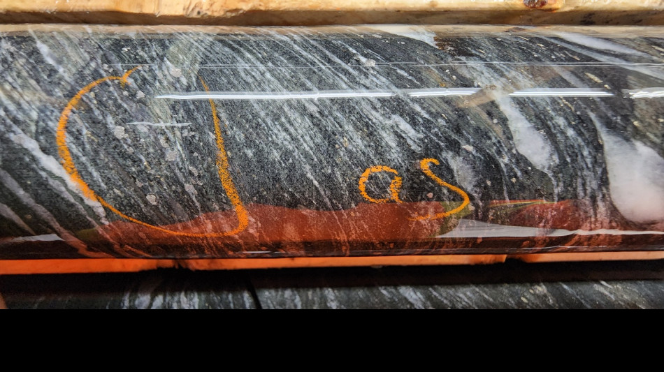 VANCOUVER, BC / ACCESS Newswire / April 25, 2025 / Gold Terra Resource Corp. (TSXV:YGT)(Frankfurt:TX0)(OTCQX:YGTFF) ("Gold Terra" or the "Company") is pleased to report that the first wedge hole GTCM25-056A, has intersected the Campbell Shear (CS) from approximately 2,665 to 2,707 metres downhole (vertical depth of 2,560 metres below surface), with the best visual mineralization concentrated between 2,689.30 and 2,707 metres downhole (as shown in photos 1 and 2 further below) on the Con Mine Option Property (CMO). Wedge hole GTCM25-056A was stopped at 2,837 metres downhole in volcanic rocks. Core samples have been sent to the lab and assays are pending. The program is continuing with a lateral wedge hole (GTCM25-056B)100 metres north at the same target elevation.